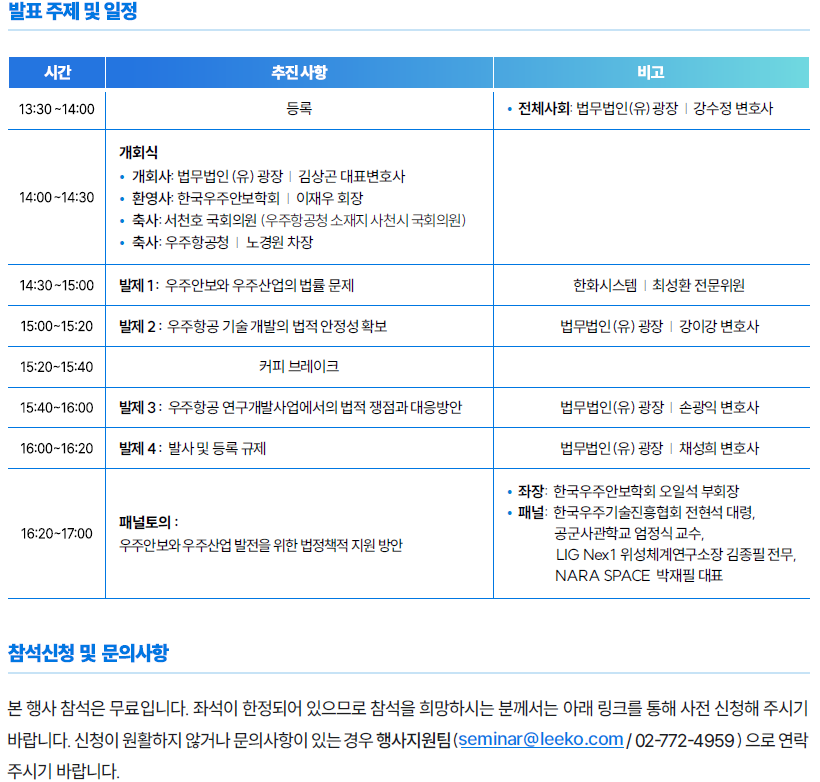 한국우주안보학회-법무법인(유) 광장 공동 세미나 개최